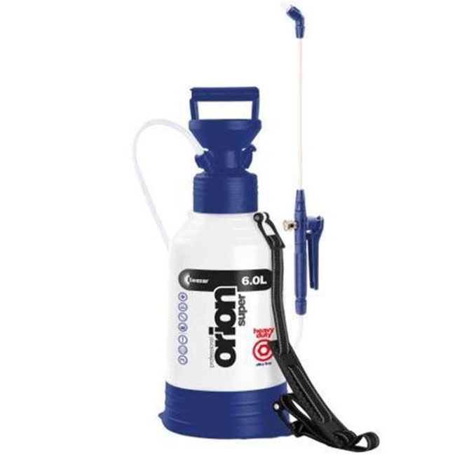 Le pulvérisateur à pression préalable ORION SUPER PRO+6L spécial alcalin est un pulvérisateur doté de joints EPDM pour résister aux produits alcalins.
